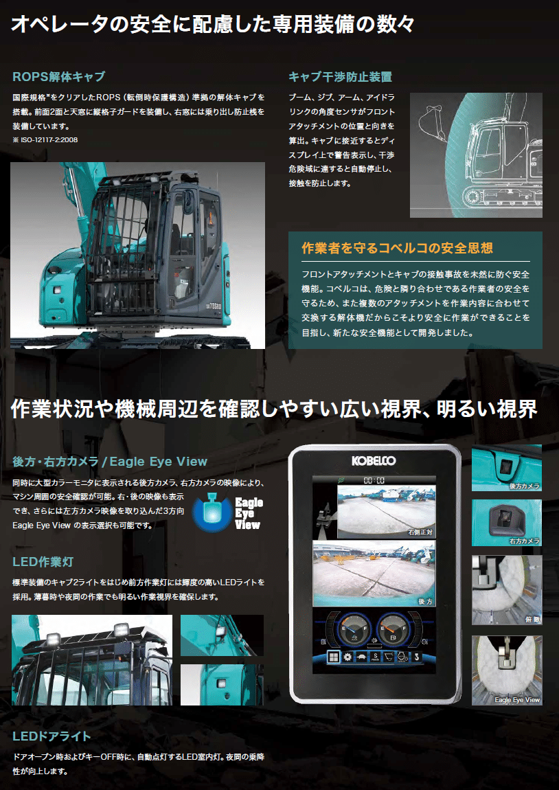 現場の安全を守るため、コベルコ社独自の安全機能が搭載されています。