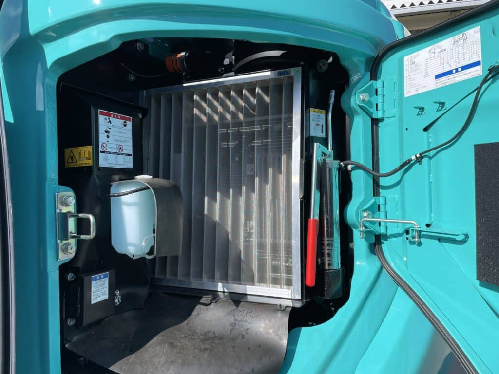 解体作業では大量の粉塵が舞いますが、iNDrは吸気口に高密度メッシュのフィルターを設置することで、機内へのダスト侵入をブロックします 。 従来機ではラジエータの目詰まりによる冷却能力の低下が心配されましたが、このフィルターのおかげで目詰まりを防ぎ、冷却性能を常に高く維持できます 。これにより、負荷のかかる連続稼働でもオーバーヒートしにくいタフな構造を実現しています。